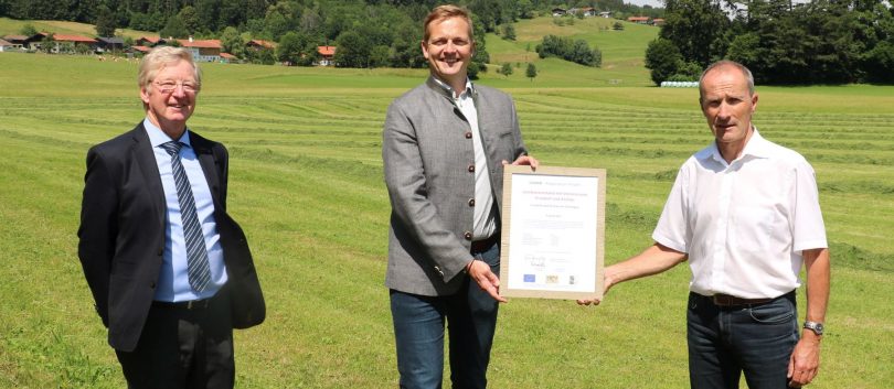 „Der Bau des Lehrbienenstandes mit Funktionsmaterialien wie auch die Ausstattung eines Seminarraumes mit Innenausstattung und Technik soll die wertvolle Vereinsarbeit des Imkervereins Frasdorf-Aschau sowie das Vereinsleben mit Sitzungen, Vorträgen, Kursen und Beratungen unterstützen“, so der Vorsitzende der LAG Chiemgauer Alpen Thomas Kamm aus Siegsdorf bei der Übergabe der Förderzusage an Aschaus Bürgermeister Simon Frank.