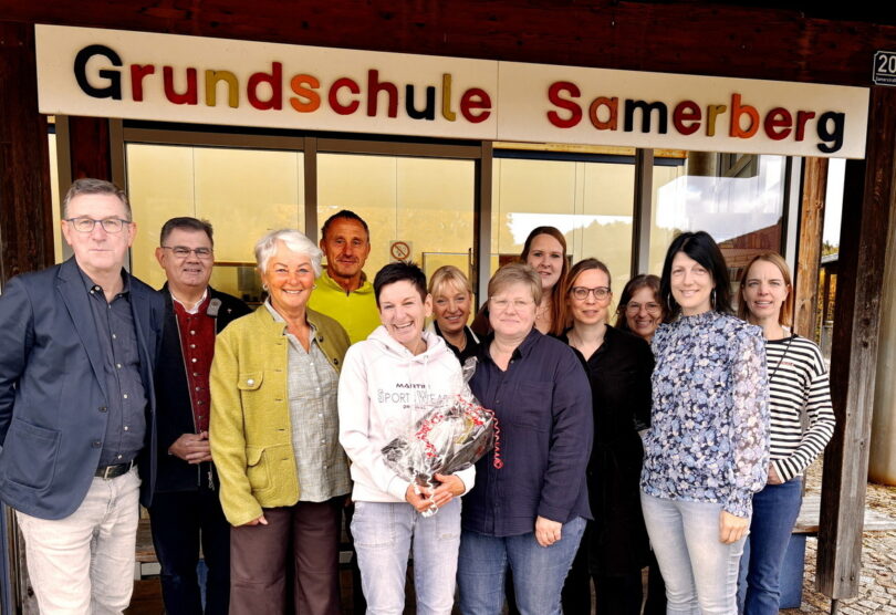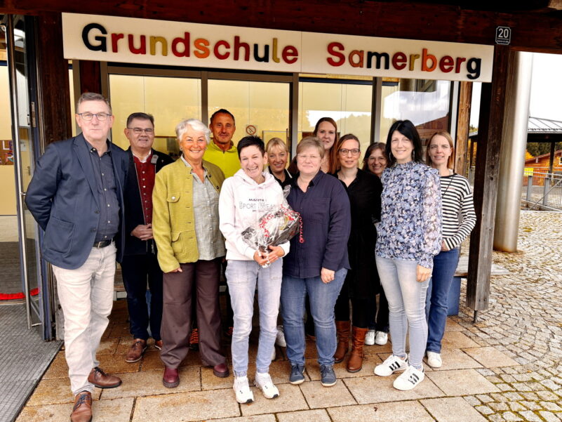 Astrid Gegenfurtner freute sich über den Überraschungsbesuch und sagte: „Ich fahre immer noch jeden Tag gerne auf den Samerberg!“ Ihr Dank galt allen, die sie auf diesem Weg begleiten und unterstützen. Der Samerberg freut sich auf viele weitere gemeinsame Jahre und eine weiterhin positive Entwicklung der Grundschule.