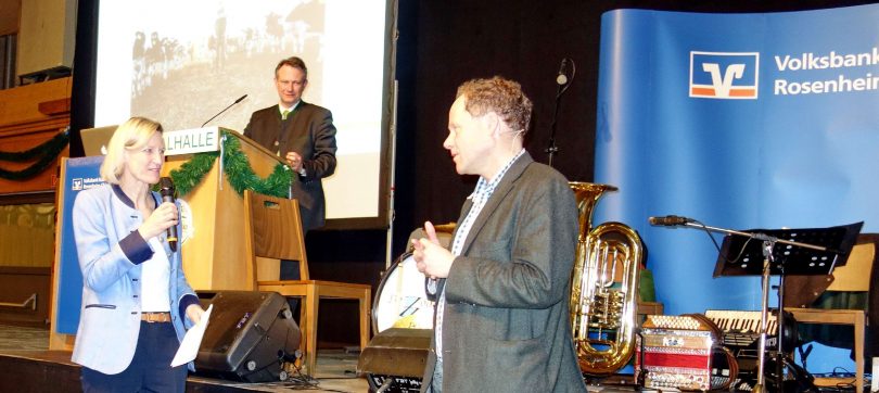 Fotos: Hötzelsperger – Prof. Dr. Angelika Niebler bei der Veranstaltung der Volksbanken Raiffeisenbanken Rosenheim und Umgebung in der Inntalhalle mit Stefan Dürr, Landwirt in Russland