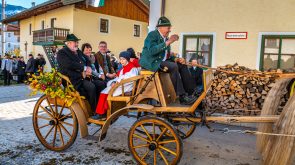 Den Gottesdienst im Freien feierten Pfarrer Robert Baumgartner und Diakon Günter Schmitzberger gemeinsam. Für Diakon Schmitzberger ist es wichtig, dass die Leute auch bei den traditionellen Veranstaltungen spüren wie notwendig die Verbindung zum Himmel ist und er ergänzte: „Es solle nicht nur Show sein, sondern man solle auch die Tiefe erkennen, warum man das macht, und warum es früher eingeführt wurde, nämlich um den Glauben immer wieder zu bekräftigen, um den Segen für die Tiere, die Ställe und für die tägliche Arbeit zu erlangen. Da ist der Segen Gottes etwas sehr Wesentliches“. Bürgermeister Georg Huber von der Gemeinde Samerberg bedankte sich in seinem Grußwort beim Leonhardiverein, bei der örtlichen Feuerwehr und bei all den fleißigen Händen, die den Leonhardiritt ermöglichten und gestalteten. Nach dem Segen für Ross und Reiter und dem Umritt unterhielten die Musikkapelle Nußdorf und die Baschtler Goßlschnalzer. Bei der kleinen Bewirtung musste auf der Corona-Situation auf Kuchenverkauf und Verkauf anderer verzichtet werden.