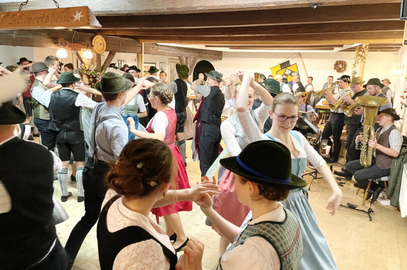 Begeistert wurde beim Leonharditanz der Aktiven des Trachtenvereins Reichertsheim im Gutsgasthof in Thambach getanzt. Zu den boarischen Klängen der „Jungen Oakarrer Musi“ drehte im Saal das tanzfreudige Publikum der überwiegend jungen Leute ihre Runden. Wer auf seinem Eintrittszeichen ein aufgemaltes „Herzerl“ vorfand bekam einen Ehrtanz und durfte dann die Bar aufsuchen, zu der die Gaststube im Erdgeschoss umfunktioniert worden war.