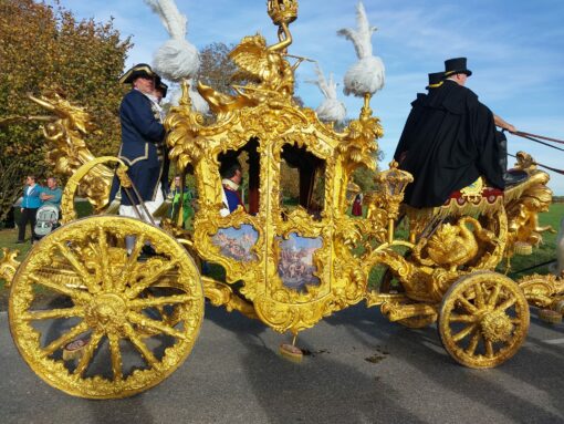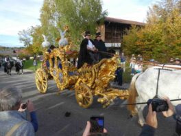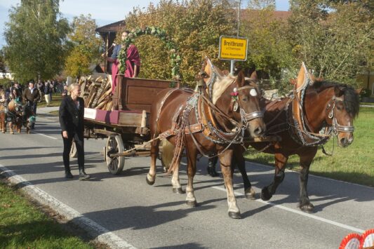 Föhn soweit das Auge reichte, prächtige und liebevoll geschmückte Rösser und Gespanne und erstmals die königliche Kutsche vom Ludwig-II-Film prägten den heurigen Leonhardiritt in Breitbrunn. Alle Hände voll zu tun, um den Umritt vorzubereiten und sich auf einen Besucheransturm einzustellen hatte der Verein „D´Rosserer Breitbrunn-Gstadt“ mit seinem Vorsitzenden Josef Obermeier.