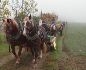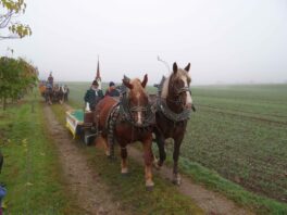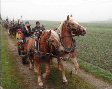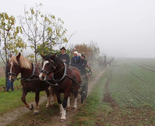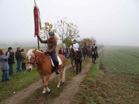 Der heilige Leonhard gilt als Schutzpatron der landwirtschaftlichen Tiere, vor allem der Pferde. Prachtvoll blumengeschmückte Rösser und Gespanne werden hierbei als Dank für deren harte Arbeit auf Flur und Wald gesegnet.