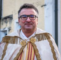 Leonhardiritt in Nußdorf an der St. Leonhardskirche: Pfarrer Christoph Rudolph bereitet den Weihrauch für die Segnung vor….