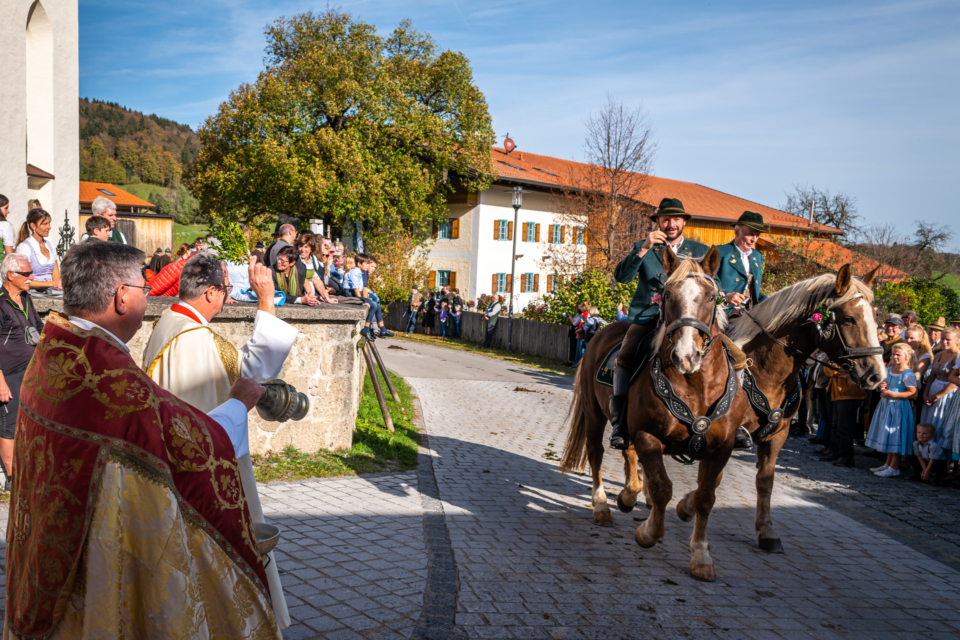 Farbenprächtiger Leonhardiritt in Roßholzen/Samerberg