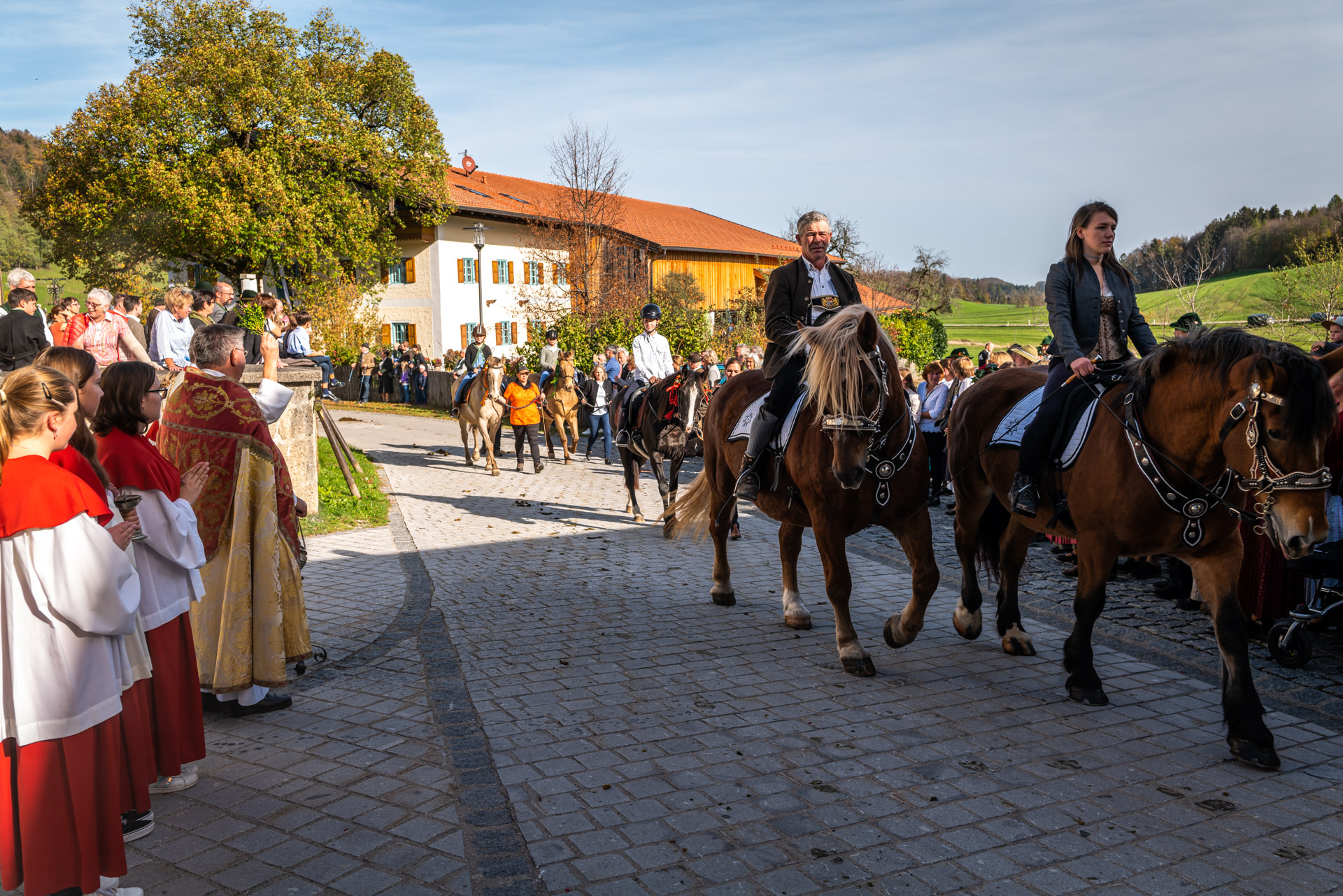 Farbenprächtiger Leonhardiritt in Roßholzen/Samerberg