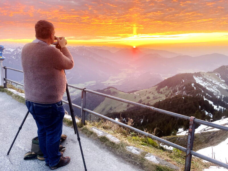 Fotos: Hötzelsperger – Eindrücke von der jüngsten Mondscheinfahrt mit stimmungsvollen Sonnenuntergangsbildern auf dem Wendelstein. Foto: Sonnenuntergang: Rainer Nitzsche