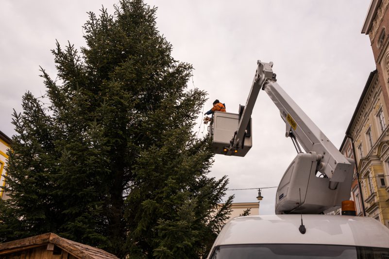 Letzte Vorbereitungen für den Rosenheimer Christkindlmarkt