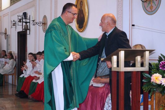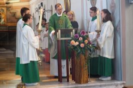 Reichel stellte den Heiligen Zachäus in den Mittelpunkt seiner Predigt. „Gott macht uns groß“, stellte der Pfarrer in Bezug auf die Botschaft Christi fest und machte Mut für die vor den Gemeinden liegende Zeit. Darüber hinaus bedankte sich Reichel bei allen haupt- und ehrenamtlichen Mitarbeitern und entschuldigte sich für den Fall, dass einmal ein Wort nicht richtig angekommen sei. Auch seine Überzeugung, durch das Aufbrechen von Traditionen Platz für Neues zu machen, betonte er gleichsam mit der Entschuldigung, falls es auch diesbezüglich einmal ein Missverständnis gegeben habe.