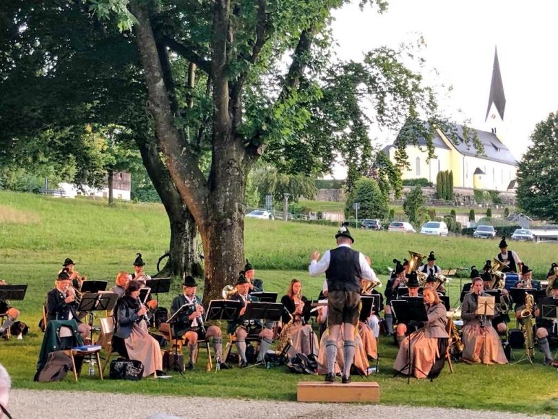 Coronabedingt war die heurige Reihe der Stand- und Kurkonzerte der Musikkapelle Bernau etwas kleiner. Groß war jedenfalls das Interesse der Bernauer und der Urlaubsgäste als bei einem schönen Sommerabend die Blasmusikanten unter der Leitung von Albert Osterhammer im gemeindlichen Kurpark mit Konzert- und Marsch-Musik erfreuten. Die Zuhörer verfolgten das Geschehen mit gebotenem Abstand und mit Blick auf die Ortskirche St. Laurentius.