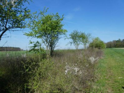 Was direkt nach der Maßnahme zunächst wie eine Beeinträchtigung aussieht, ist für viele Gehölze eine wichtige Verjüngung. Denn mangelnde Pflege ist oft die Ursache für eine sogenannte Vergreisung oder das Auseinanderbrechen von Hecken. Damit verlieren sie ihre wichtigen Funktionen für den Erosionsschutz oder auch als Lebensraum für Pflanzen und Tiere. Wertgebende Gehölze wie alte Weißdorne oder Obstgehölze vertragen allerdings einen solchen starken Rückschnitt nur schlecht und bleiben daher stehen. Stehendes und liegendes Totholz bereichern den Lebensraum Hecke zudem.