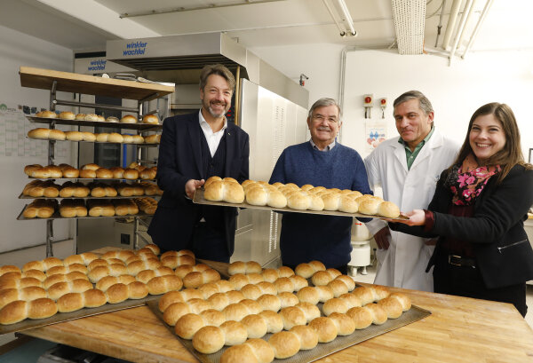 Gerold Blaumoser, Betriebsleiter der Freisinger Tafel, hat am Donnerstag wieder eine Ladung Semmeln entgegengenommen und sich bei LfL- Präsident Stephan Sedlmayr bedankt. Denn der Bedarf an Lebensmitteln an der Freisinger Tafel ist groß: Rund drei Tonnen Lebensmittel werden pro Woche an Bedürftige ausgegeben, etwa 1200 Menschen erhalten Unterstützung durch die Freisinger Tafel. Die Zusammenarbeit zwischen der Tafel und der LfL besteht inzwischen bereits seit zehn Jahren. Pro Jahr werden so rund 50 000 Semmeln von der LfL an die Tafel weitergegeben. Im Backlabor der LfL wird die Qualität von unterschiedlichen Weizensorten getestet. Das Getreide stammt aus LfL-Anbauversuchen in Bayern und anderen Regionen Deutschlands. Vermahlen wird vor Ort und das Weizenmehl dann jeweils sortenrein und in einem standardisierten Verfahren auf seine Backqualitäten hin überprüft. Unter anderem werden der Klebergehalt und die Stärkebeschaffenheit sowie die Fähigkeit der Wasseraufnahme des jeweiligen Getreides getestet. Hiervon sind Elastizität und Klebrigkeit der Teigoberfläche abhängig und beeinflussen das Backergebnis direkt. LfL-Bäcker Hans Grameier prüft und vergleicht das Volumen und die Bräunung der Semmeln sowie deren Kruste, die Porengleichmäßigkeit und Elastizität der Krume.
