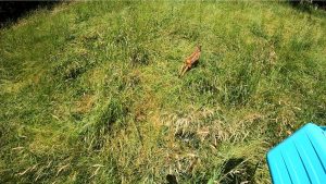 Kitz einfangen mit einem Wäschekorb (Foto: T. Wiesel, LfL).
