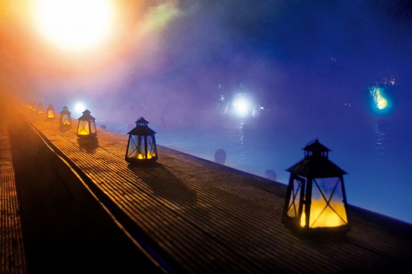 „Schwimmen und Saunieren bei Saitenklängen und Kerzenlicht“ ist das Motto beim ersten Lichterabend nach der Sommerpause am Freitag, sechsten Oktober. Brennende Fackeln, leuchtende Laternen und Kerzenschein setzen die Thermenlandschaft und Saunawelt von 18 bis 23 Uhr romantisch in Szene. Der Rimstinger Alexander Mangstl untermalt die zauberhafte Stimmung mit klassischen Harfenklängen im Saunabistro und im Thermenbistro spielt für die Gäste ein Gitarrenduo. Dieses außergewöhnliche Erlebnis mit weiteren Extras wie Yoga, Aqua Zumba® zum Mitmachen, Teezeremonie in der Saunalounge sowie Erlebnisaufgüsse und Spezialpeelings gibt es zum Veranstaltungstarif ab 17 Uhr. Informationen telefonisch unter 08053 200-900 und auf www.chiemgau-thermen.de.