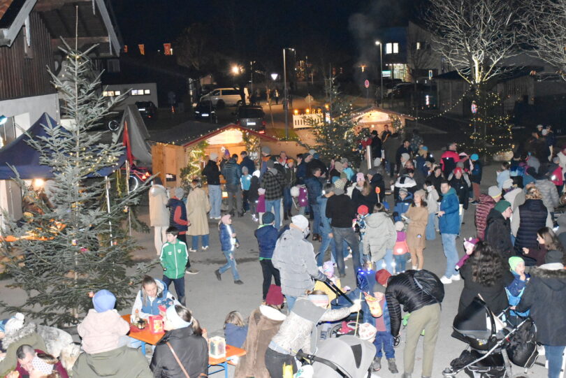 Marquartstein – Aus allen Richtungen strömten Groß und Klein zum Ritter Marquart Brunnen. Die Kinder trugen ihre leuchtenden, meist selbst gebastelten, kreativen Laternen. Organisiert hat das Lichterfest der Stoamandl Verein mit 50 Helfern aus dem Dorf und unter der Regie von Christiane Heer und Diana David.