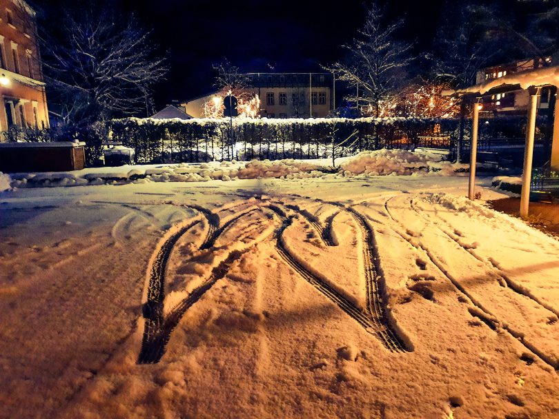 Wer gestern Abend in den Hinterhöfen von Aschau unterwegs war, konnte vielleicht auch diese von PKWs verursachten Liebesspuren im Schnee bestaunen.