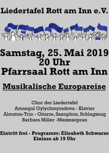Die Liedertafel Rott am Inn lädt am 25. Mai zu einem Konzert mit dem Thema Europa ein: