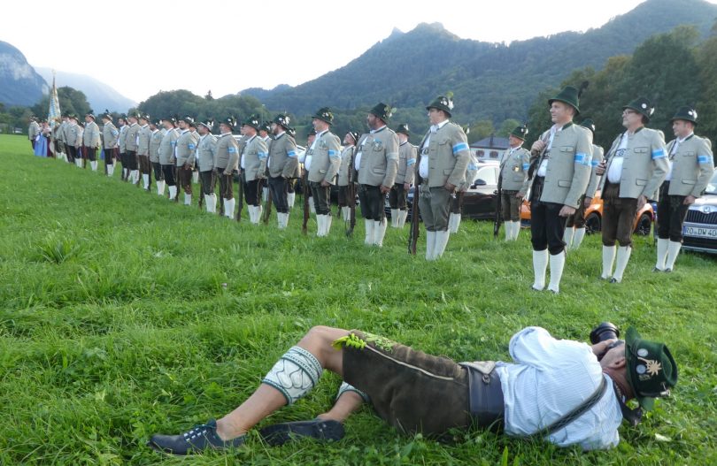 Gute Fotos entstehen nicht immer auf einfachste Weise. Neben den Kenntnissen von Kamera und Licht bedarf es auch eines guten Blickwinkels. Diesen hat unser Fotograf beim heurigen Gebirgsschützen-Bataillonsfest in Aschau i. Chiemgau gefunden indem er sich auf den Boden lag. Bestimmt sind die Bilder mit den Aschauer Gebirgsschützen und mit den Chiemgauer Bergen im Hintergrund gelungen.