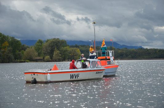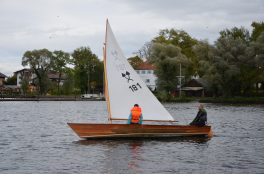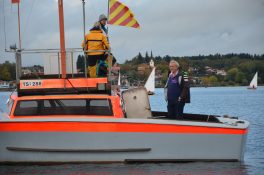 Von Wolfgang Dietzen – Als die Chiemseeplätte 459 von Manfred Götz am 3. Oktober gegen 15:15 Uhr als Erste über die Ziellinie glitt, war die Freude auf allen Chiemsee-Plätten, Chiemsee-Schratzen und Begleitbooten der Traditionsregatta kaum mehr zu fassen.