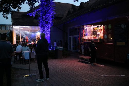 Bildunterschrift: Regionaler Foodtruck „Mahl anderes“ verköstigt Konzertbesucher von „Little Swinging Prien“.