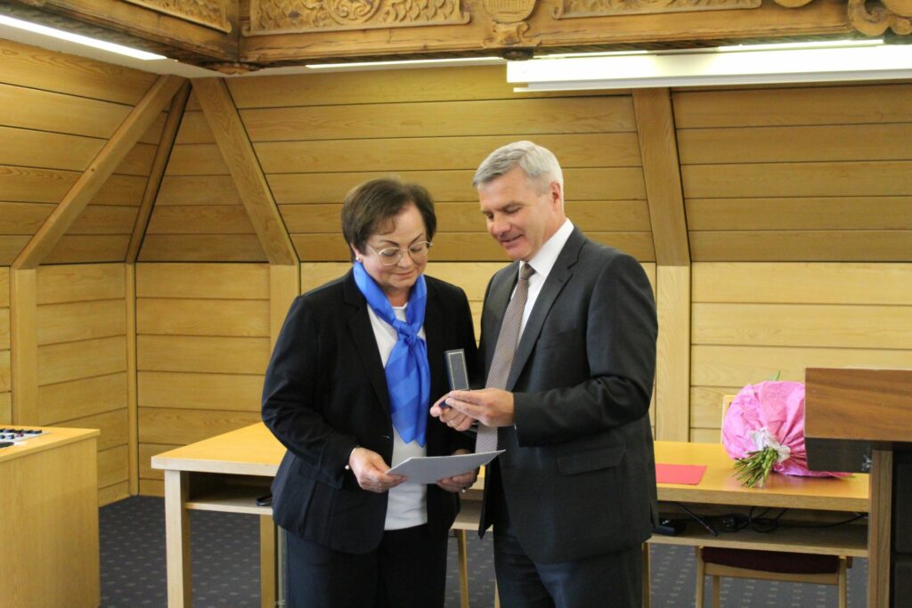 : Landrat Peter Dreier überreichte Sabine Kermer-Prelicz das Ehrenzeichen des Bayerischen Ministerpräsidenten für Verdienste im Ehrenamt.