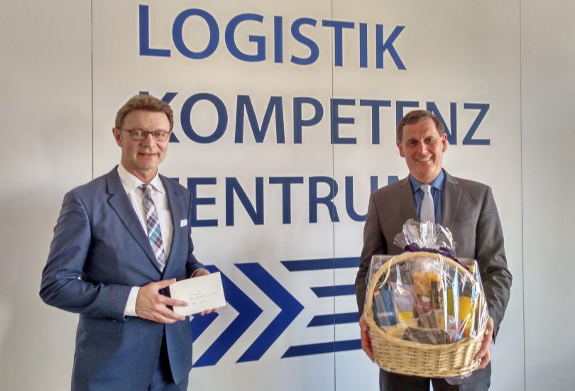 Foto: LKZ-Geschäftsführer Karl Fischer überreichte im Namen der LKZ Prien GmbH zum Abschied einen Geschenkkorb an Herrn Ersten Bürgermeister Jürgen Seifert (Quelle: LKZ Prien GmbH)