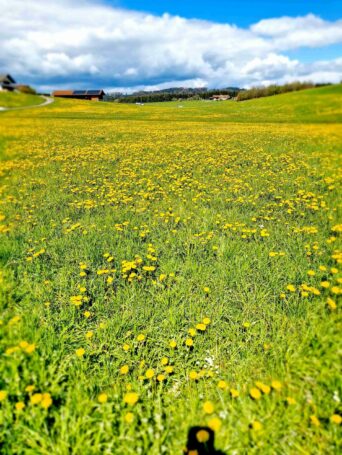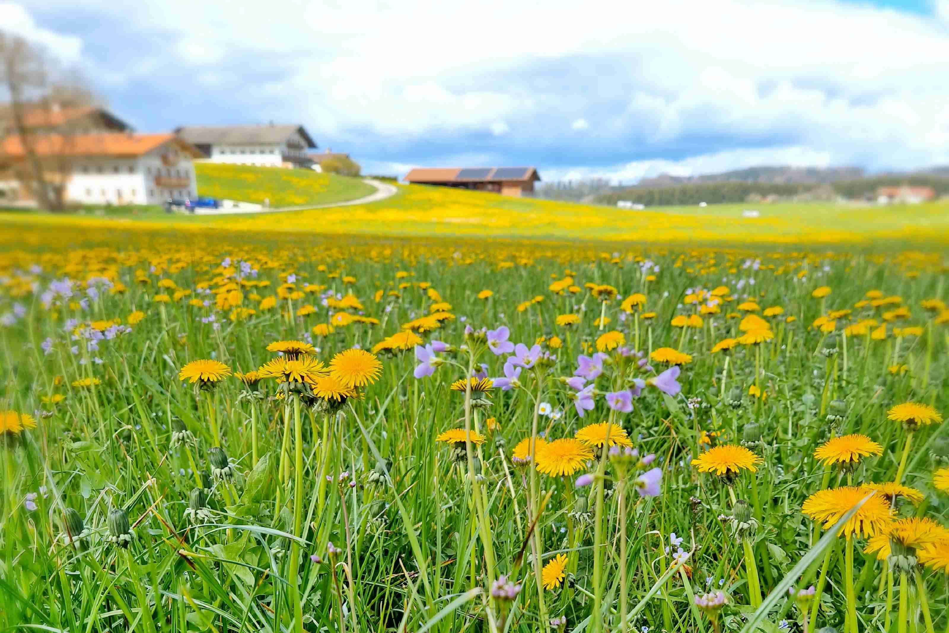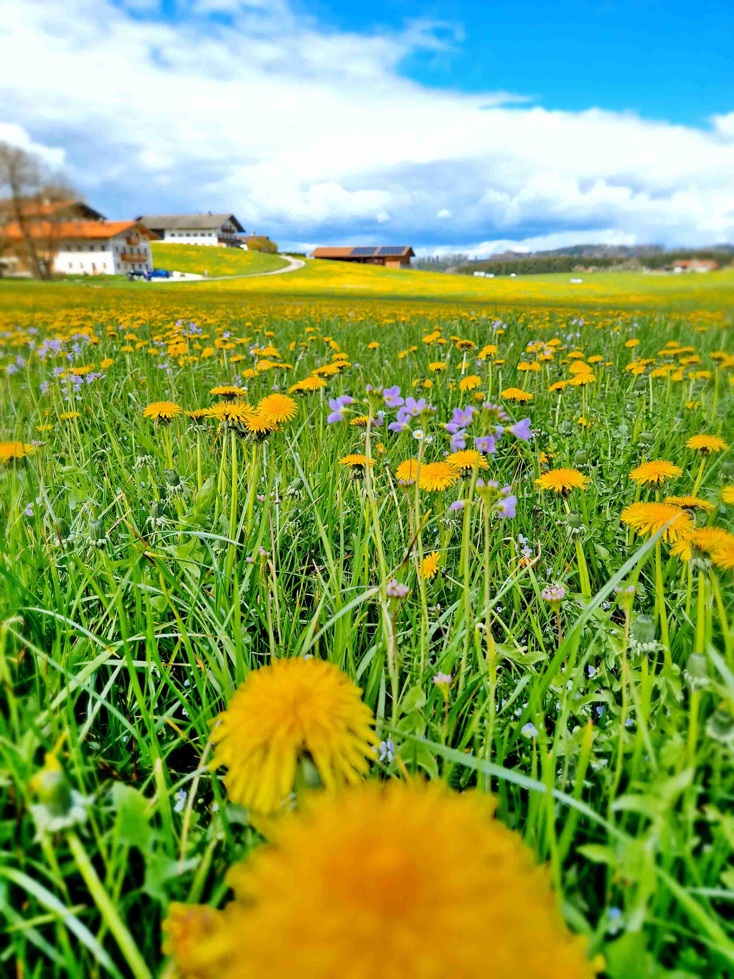 Auch wenn das Frühjahr etwas auf sich warten lässt: in Prien-Elperting und sicher auch in vielen weiteren Chiemgau-Orten präsentieren sich die Wiesen und Felder in einem schönen Löwenzahn-Gelb.