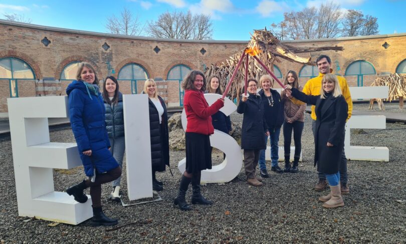 Bildunterschrift: Schluss mit der EISZEIT – das Lokschuppen-Team entzündet das Vulkanfeuer. Von links: Sarah Smyka, Laura Steinhuber, Anja Schuster, Lokschuppen-Leiterin Dr. Jennifer Morscheiser, Martina Mayrhofer, Stefanie Kießling, Annette Gallner, Katharina Reischl, Johannes Bichler und Elena Sangl.