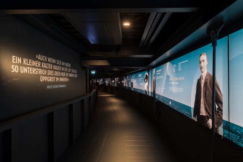 Bildunterschrift: Jeder Schritt ein Schicksal – entlang des Stegs begegnen Besucherinnen und Besucher den Geschichten der Titanic-Reisenden.