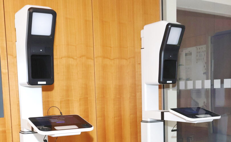 Bericht und Foto: LRA Rosenheim – Die POINT-ID-Systeme im Foyer des Landratsamts passen sich automatisch an die Körpergröße der fotografierten Person an und erzeugen einen neutralen Hintergrund.