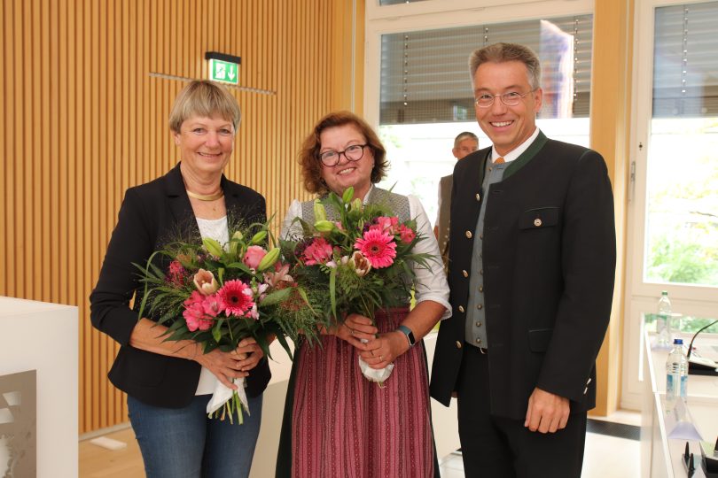 Nach acht Jahren im Amt wurden Irene Oberst und Christiane Grotz erneut als Beauftragte für die Belange von Menschen mit Behinderungen vom Kreistag bestellt. „Wir sind sehr froh und glücklich, Sie bei uns zu haben und dass Sie sich erneut bereiterklären, dieses wichtige Amt weiter zu übernehmen“, zeigte sich Landrat Otto Lederer begeistert und überreichte Irene Oberst und Christiane Grotz zum einstimmigen Beschluss je einen Blumenstrauß.