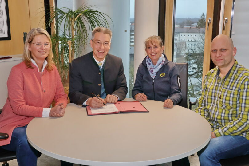Bericht und Foto: LRA Rosenheim – Freuen sich auf die weitere Zusammenarbeit (von links): Jugendamtsleiterin Sabine Stelzmann, Landrat Otto Lederer, Kreisjugendring-Vorsitzende Erika Spohn und Jörg Gießler vom Kreisjugendring.