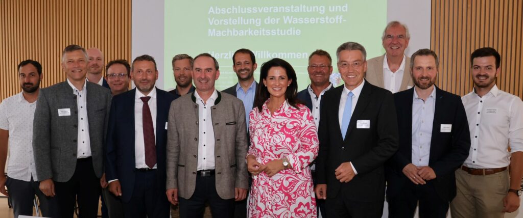 Am Montag, den 10. Juli 2023 fand im Landratsamt Rosenheim die Abschlussveranstaltung zur Wasserstoff-Machbarkeitsstudie Inntal-Rosenheim-Traunstein statt. Unter den über 80 Teilnehmerinnen und Teilnehmern befanden sich auch der stellvertretende bayerische Ministerpräsident und Staatsminister für Wirtschaft, Landesentwicklung und Energie Hubert Aiwanger sowie die Bayerische Staatsministerin für Ernährung, Landwirtschaft und Forsten Michaela Kaniber. Zahlreiche weitere Vertreterinnen und Vertreter aus Politik, Behörden, Kommunen, Wissenschaft, Wirtschaft und Verbänden ergänzten das hochrangig besetzte Publikum.