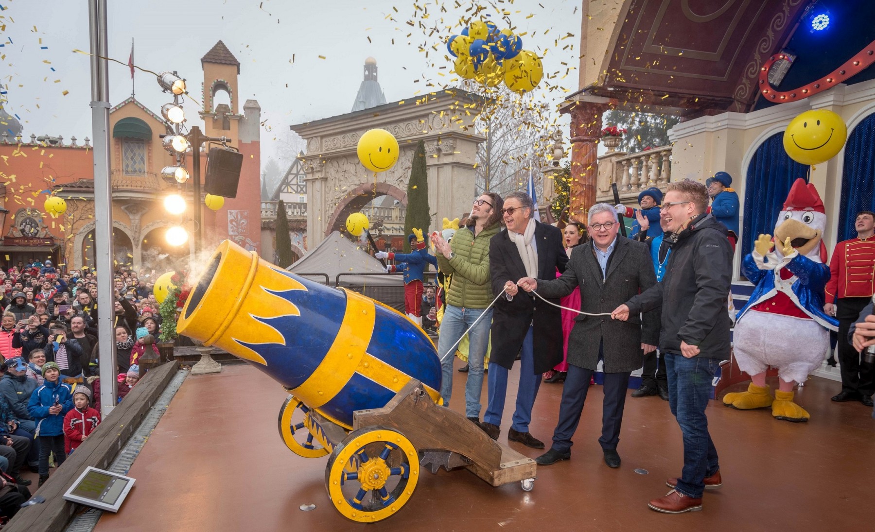 Gil Ofarim, Dr.-Ing. h.c. Roland Mack, Guido Wolf und Kai-Achim Klare (v.l.) eröffnen die 44. Saison des Europa-Park