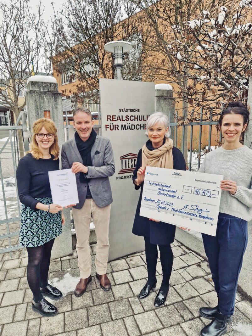 Foto: Mädchenrealschule – v.l.n.r.: Barbara Utz, MRS-Sternstundenteam; Florian Babel, Geschäftsführer Sternstunden; Magdalena Singer, Schulleiterin; Sandra Scheibe, MRS-Sternstundenteam
