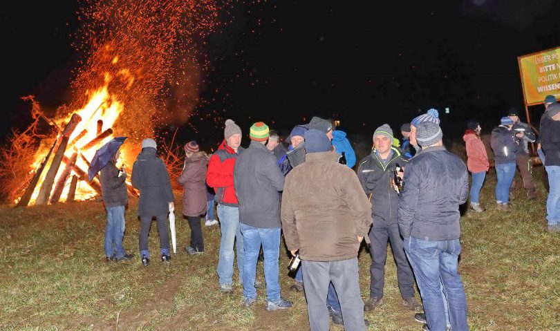 Letzten Samstag trafen sich über 80 Landwirte und interessierte Verbraucher auf einem Feld bei Forsting um mit einem Mahnfeuer auf die Schieflage der aktuellen Situation aufmerksam zu