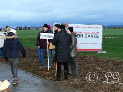 Von 16 Uhr bis 19 Uhr trotzten die Menschen Wind und Regen und protestierten mit Schildern und Fackeln gegen die Pläne der Bahn und Politik. Nicht nur die Panger, sondern auch die Aisinger Bürger haben sich dem Protest angeschlossen und mehrere Feuer entzündet. Das große Feuer auf den Panger Feldern konnte leider wegen dem starken Wind nicht entzündet werden, da die Gefahr für die Menschen und die umliegenden Höfe zu hoch war. Auf jeden Fall war das erst der Auftakt für viele weitere geplante Aktionen der BI.