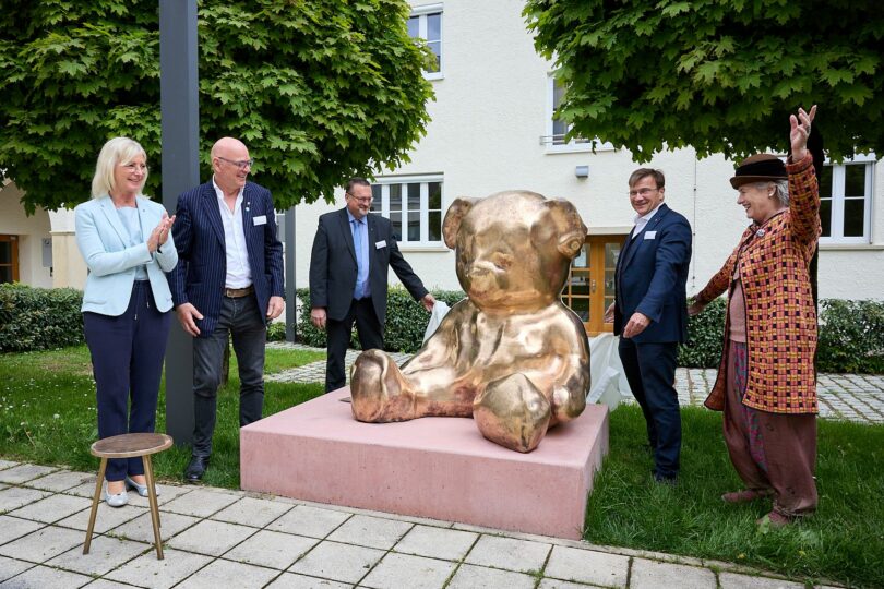 In Erinnerung an erlebtes Leid in der Heimerziehung zwischen 1949 und 1975 hat das Bayerische Familienministerium gemeinsam mit den beiden Kirchen und der am Zentrum Bayern Familie und Soziales-Bayerisches Landesjugendamt angesiedelten Anlauf- und Beratungsstelle für ehemalige Heimkinder und der Stiftung Anerkennung und Hilfe einen Kunstwettbewerb ausgelobt. An diesem konnten professionell freischaffende Künstlerinnen und Künstler teilnehmen. Gewonnen hat das Kunstwerk „in the name of“ des Künstlers Bruno Wank: Ein goldglänzender Bär, der auf einem rosafarbenen Natursteinpodest sitzt. In seinem Ohr befindet sich ein QR-Code, der zu weiteren Informationen zu dem Thema führt. Am Bayerischen Landesjugendamt wurde außerdem eine neue dauerhafte Beratungsstelle für alle Menschen, die als Minderjährige in einem Heim untergebracht waren und heute keinen Anspruch mehr auf Jugendhilfeleistungen haben, ins Leben gerufen: die Bayerische Beratungsstelle für Menschen mit Heimerfahrung in Kindheit und Jugend (BMH). Dazu betont Familienministerin Ulrike Scharf: „Die Beratungsstelle ist für alle Menschen mit Heimerfahrungen aus der Kinder- und Jugendhilfe, der Behindertenhilfe, den psychiatrischen Einrichtungen und den ehemaligen Erholungs- und Kurheimen bundesweit einzigartig und dringend notwendig. Auch ‚Verschickungskinder‘ erhalten dort gezielt Unterstützung. Sie haben Schlimmes erlebt und brauchen passende Hilfe. Wir lassen die Betroffenen nicht alleine!“
