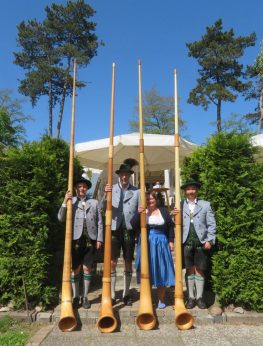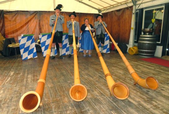 Mit dabei waren dieses Mal weit angereiste Gäste vom Verein „Einigkeit“ der Bayern in Dortmund , das Herdecker-Alphorn-Trio, Andrea, Reinhard und Tim. Sie sind das Highlight ihres Bayernvereins. Gemeinsam mit dem Vorsitzenden des Berliner Bayernvereins ließen sie während der Feier mehrmals die Alphörner erklingen.