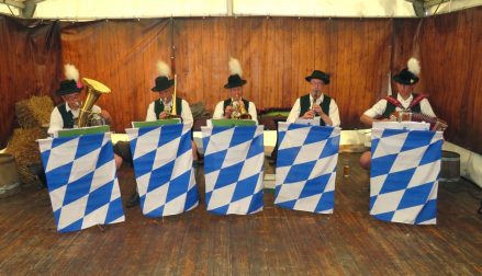 Für die musikalische Umrahmung sorgte die Böhmische Blaskapelle „Zlata Muzica“ unter der Leitung von Jens Schmidt. Dazwischen gab die Trachtentanz- und Schuhplattler-Gruppe mehrere Tanzeinlagen zum Besten geben. Weiterhin hat das Gesangsduo „Gerhild und Siegi“ in Bayerischer Mundart volkstümlich die Gäste unterhalten. Dazu verliehen die Alphörner aus Dortmund und Berlin der Feier die typisch alpenländliche Stimmung eines „Almauftriebs“. Nur die Kühe haben noch gefehlt! Mit bayerischem Bier und traditioneller bayerischer Gastronomie sorgte der Hüttenwirt Lutz Bande für das leibliche Wohl der Gäste.