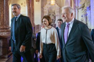 Markus Söder, Maia Sandu und Markus Ferber auf dem Weg zur FJS-Preisverleihung Foto: HSS/Thomas Plettenberg