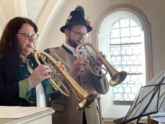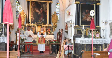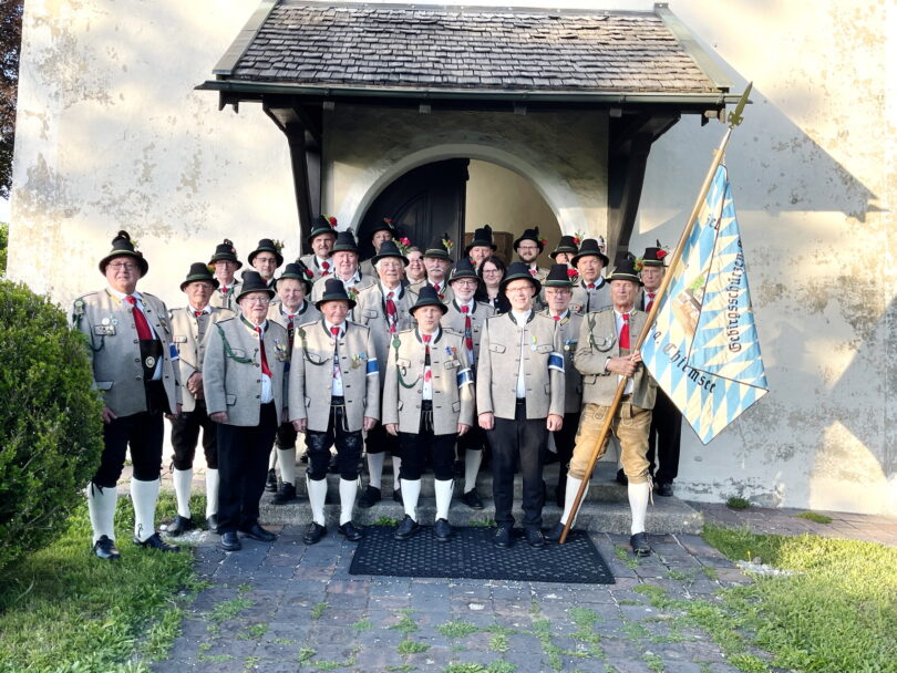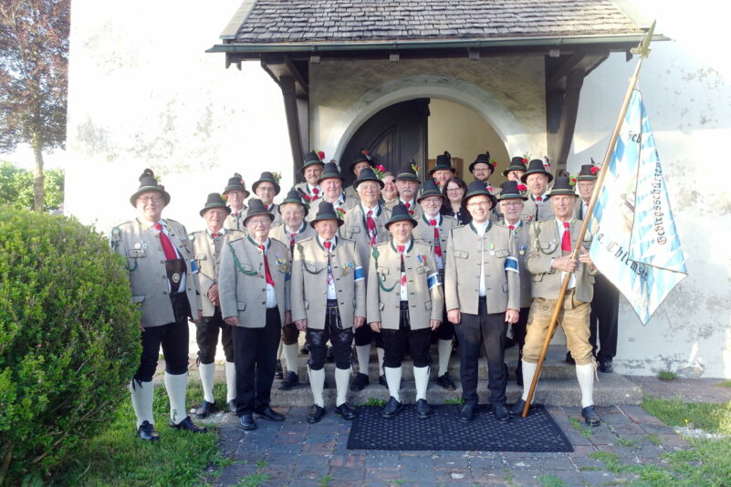 Am Festtag der Heiligen Dreifaltigkeit, die am Hauptaltar der Filial- und Wallfahrtskirche von St. Salvator mit Gott Vater, Sohn und Heiligem Geist sichtbar ist, lud die Priener Gebirgsschützenkompanie zu einer dortigen Maiandacht ein.