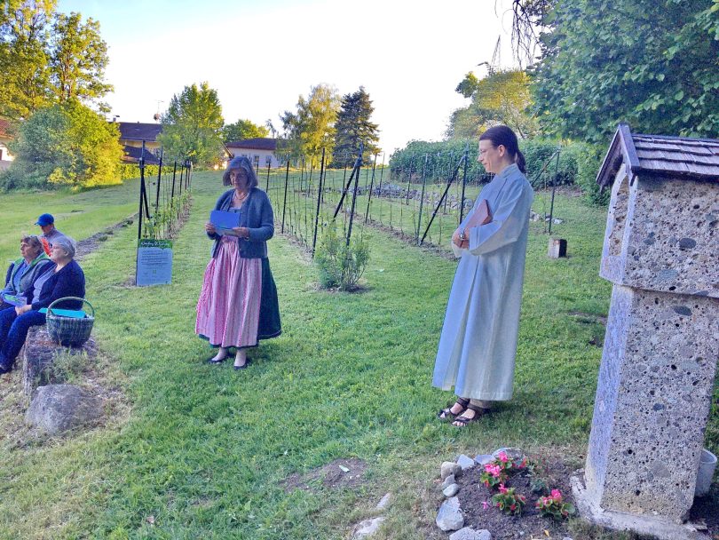 Der Gartenbauverein Prien und Umgebung lud zur Maiandacht am Weinberg in St. Salvator. Rund 40 Besucher nahmen bei herrlichem Wetter teil.