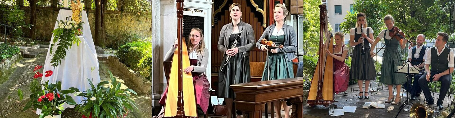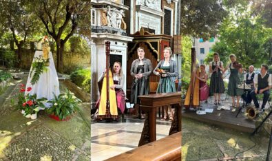 Mittlerweile sind die bayerischen Veranstaltungen in der Casa S. Maria, dem Begegnungszentrum der Erzdiözese München und Freising in Rom, feste Termine im Kalender der deutschen Community, der Partner und Nachbarn in Rom. Am Nachmittag des 6. Mai war es dann wieder soweit. Zahlreiche Besucher fanden sich im Garten der Casa S. Maria ein, um gemeinsam eine Andacht zu Ehren der Gottesmutter zu feiern. Der Generalvikar des Erzbischofs von München und Freising, Christoph Klingan, leitete die Maiandacht abwechselnd in deutscher und italienischer Sprache. Musikalisch wurde die liturgische Feier vom Perlseer Dreigsang gestaltet. Gemeinsam mit zwei Blechbläsern wurden die Sängerinnen auch in den nächsten Stunden nicht müde und unterhielten das römische Publikum bis in die Nacht hinein. Der Austausch zwischen den Gästen war wieder einmal sehr intensiv. Nicht zuletzt angeregt durch das bayerische Mehr-Gänge-Menü des Landshuter Kochs, Kurt Raß und seiner Mannschaft. Eine ebenso liebgewordene Tradition ist die Gestaltung des Sonntagsgottesdienstes in der deutschen Nationalkirche S. Maria dell‘ Anima. Der musikalische Beitrag der bayerischen Gäste wurde mit einem langanhaltenden Applaus und vielen Fotowünschen gewürdigt. Mit der Überzeugung, dass mit der bayerischen Volkskultur die Seele der Menschen berührt wird, traten die Gäste beschwingt die Heimreise an – nicht ohne ein Stück Rom für sich mitzunehmen.