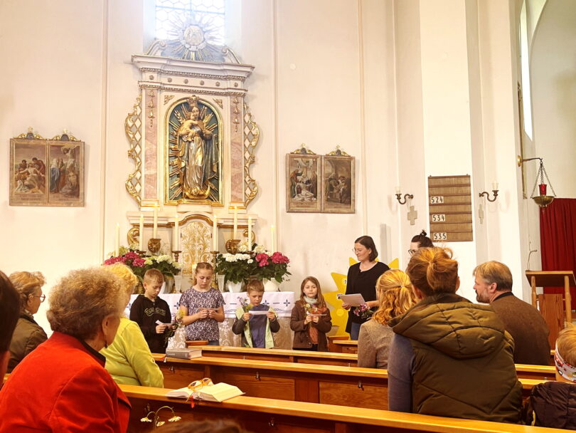 Zu einer Familien-Maiandacht versammelten sich Kinder und Erwachsene am Marienaltar der Wildenwarter Pfarrrkirche “Christkönig”.