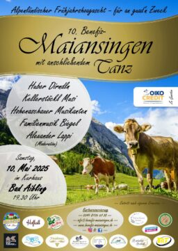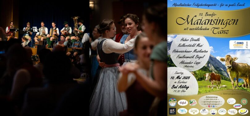 Am Samstag, den 10. Mai 2025, findet das 10-jährige Jubiläum des Bad Aiblinger Benefiz-Maiansingens mit anschließendem Tanz statt. Hochkarätige Gruppen aus Nah und Fern werden an diesem Abend im Kurhaus Bad Aibling aufspielen und -singen. Nicht nur, um den Zuhörer*innen eine Freude zu bereiten – sondern auch, um gleichzeitig gemeinsam Gutes zu tun: 100% der Eintrittsgelder werden auch dieses Jahr wieder an eine wohltätige Organisation gespdendet: Oiko Credit. Was diese Stiftung bewirkt, erfahren Sie am 10. Mai direkt von Vertreter*innen dieser Organisation.