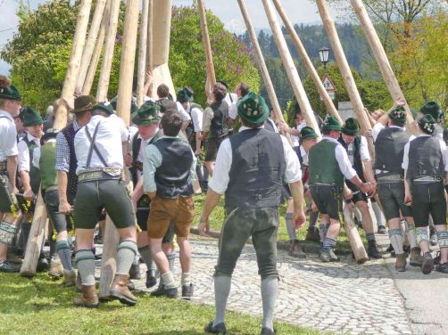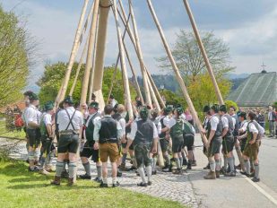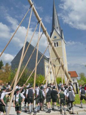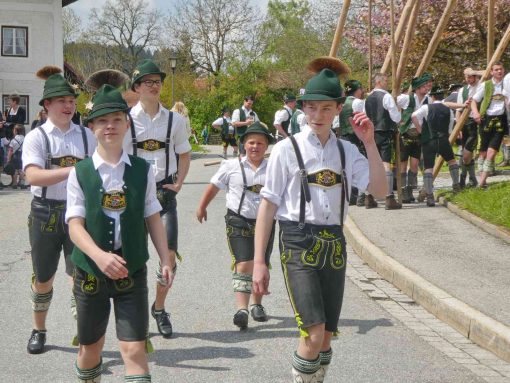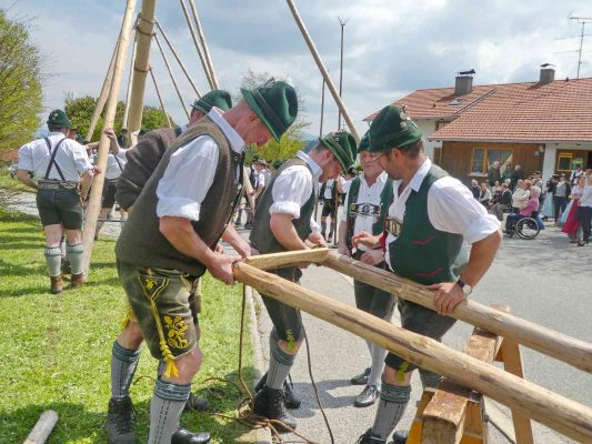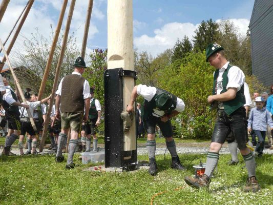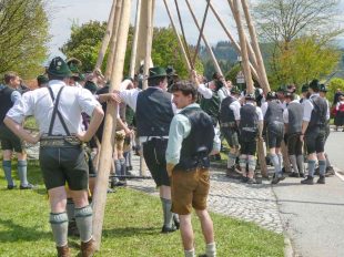 Mit einem großen Dorffest feierten die Greimhartinger Trachtler das Aufstellen ihres Maibaumes, der von Griesstätter Trachtlern, Goaßlschnalzern und Böllerschützen gebracht wurde. Nach dem erfolgreichen Aufstellen wurde noch auf dem Dorfplatz und hernach als Wind und Regen einsetzten im Gemeindehaus gemeinsam gefeiert.