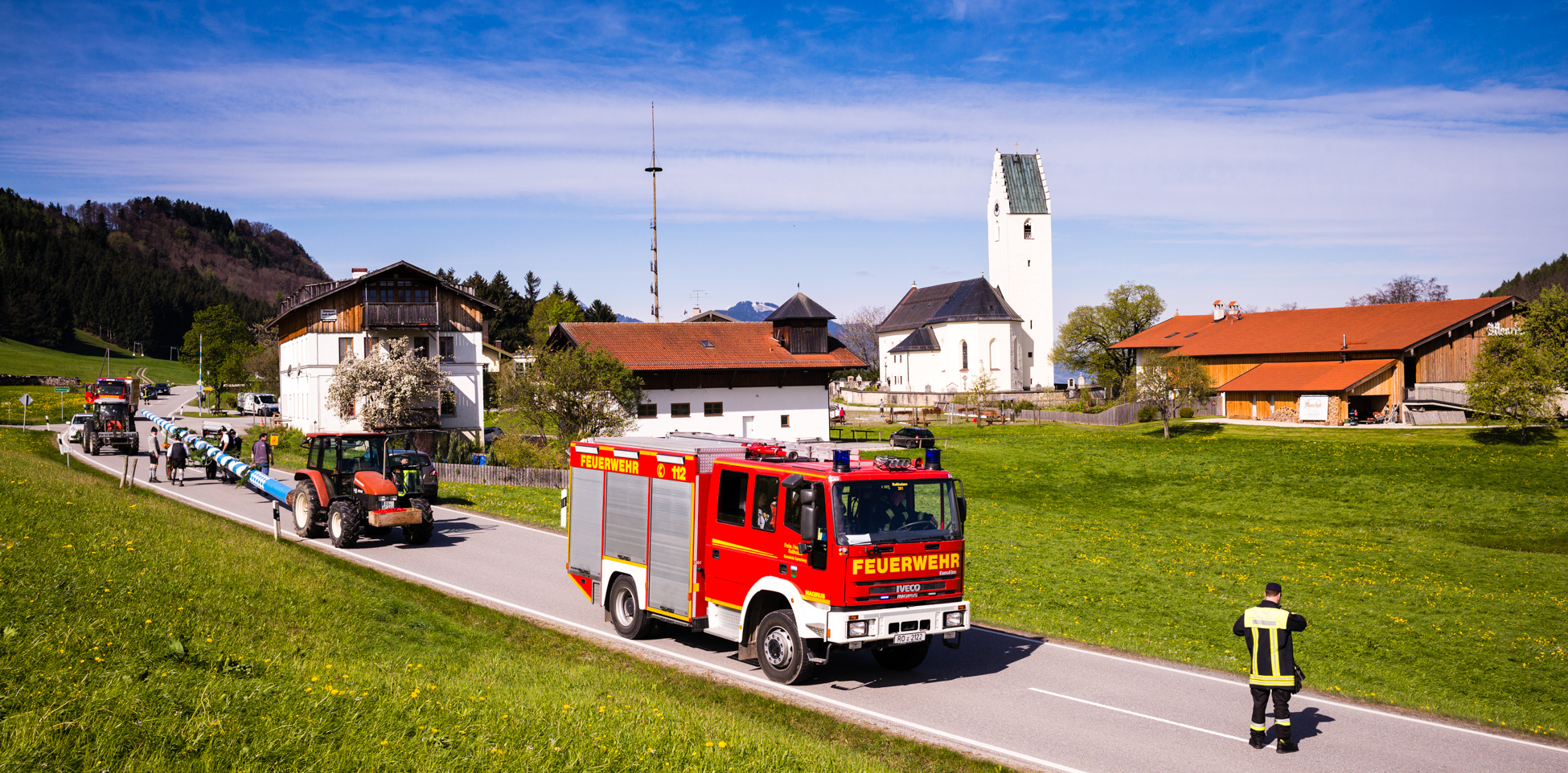 Die Feuerwehr Altenbeuern hilft bei der Sicherung der Straße