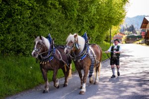 Die Pferde für den Maibaum werden von Bartholomäus Mayer nach Altenbeuern gebracht…