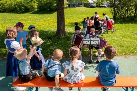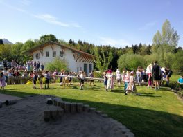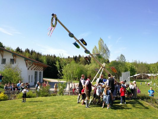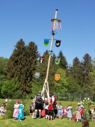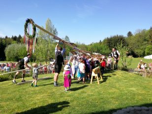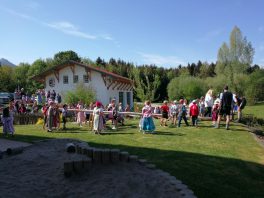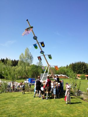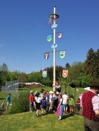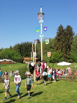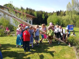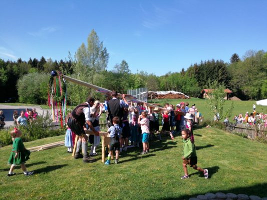 Eine große Gaudi war es für die Kleinen vom Samerberg, als die Kinderkrippen-Leiterin Angela Paul ein Frühlingsfest mit Maibaumaufstellen und mit einer spannenden Diebesaktion vorbereitete. Die “Diebe” wurden dabei beobachtet, wie sie den Maibaum der Kinderkrippe noch in der Nacht vor dem Aufstellen klauten und versuchten, diesen in einem Wohnzimmer zu verstecken. Allerdings waren die Diebe nicht ganz gescheit, denn dass ein Maibaum nicht ins Wohnzimmer passt, weiß doch eigentlich jeder. Auf jeden Fall brachten die Diebe am Morgen nach “langen” Verhandlungen den Maibaum zurück zur Kinderkrippe, wo er dann gemeinsam mit allen Kindern aufgestellt wurde.